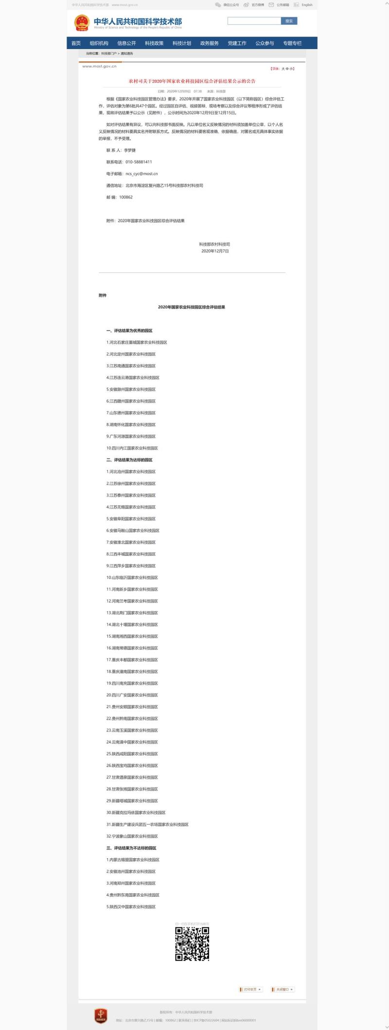 附:科技部農村司關于2020年國家農業(yè)科技園區(qū)綜合評估結果公示的公告
