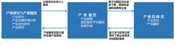 以產(chǎn)業(yè)研究與產(chǎn)業(yè)規(guī)劃為先導(dǎo),鎖定和跟蹤一批重點園區(qū),為其提供深入產(chǎn)業(yè)服務(wù),解決其發(fā)展過程中急需解決的問題;在服務(wù)園區(qū)及其相關(guān)企業(yè)的過程中,為質(zhì)地優(yōu)良的園區(qū)和企業(yè)提供投融資服務(wù),以實現(xiàn)園區(qū)、被服務(wù)企業(yè)和公司持續(xù)共贏為基本特征,最終將公司發(fā)展成橫跨全產(chǎn)業(yè)鏈輕資產(chǎn)產(chǎn)業(yè)服務(wù)商。