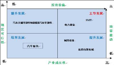 主導發(fā)展SMT和電力裝備產(chǎn)業(yè),提升發(fā)展制藥設備、醫(yī)藥包裝機械、汽車關(guān)鍵零部件和新能源汽車零部件產(chǎn)業(yè),培育發(fā)展汽車服務業(yè)。